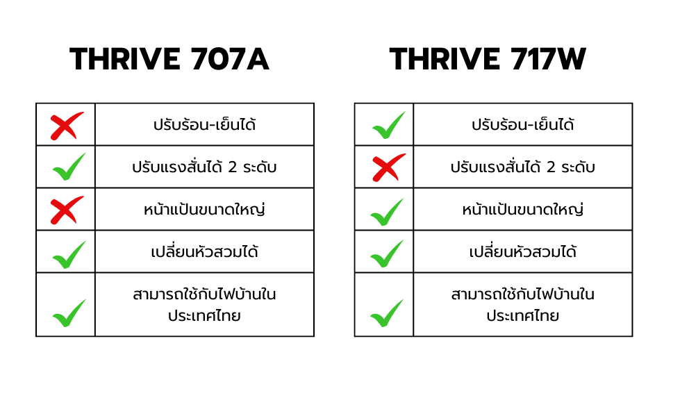 | คุณสมบัติ | THRIVE 707A | THRIVE 717W |