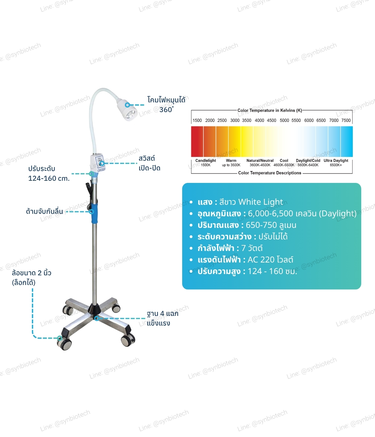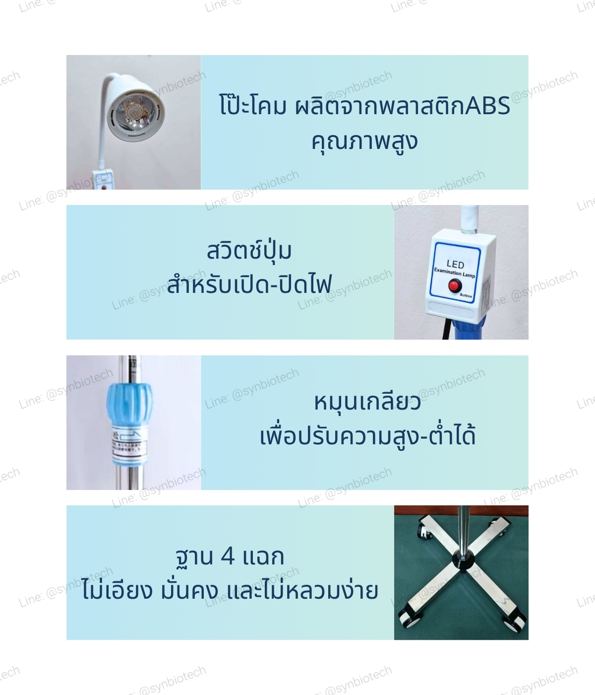 • แข็งแรง ทนทาน: ตัวโป๊ะโคมไฟส่องตรวจทำจากพลาสติก ABS มั่นคงแข็งแรงต่อการใช้งาน