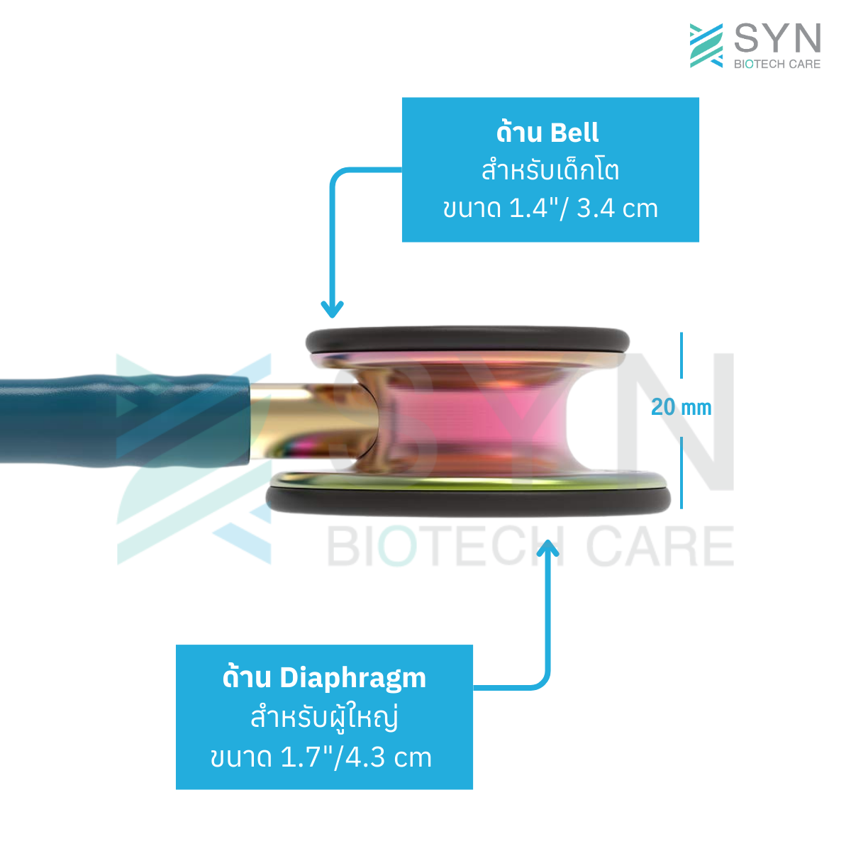 • ด้าน Bell (Pediatric) เส้นผ่านศูนย์กลาง 1.3 นิ้ว (3.3cm) สามารถปิด เปิด ด้วย Diaphragm เมื่อต้องการใช้งาน
