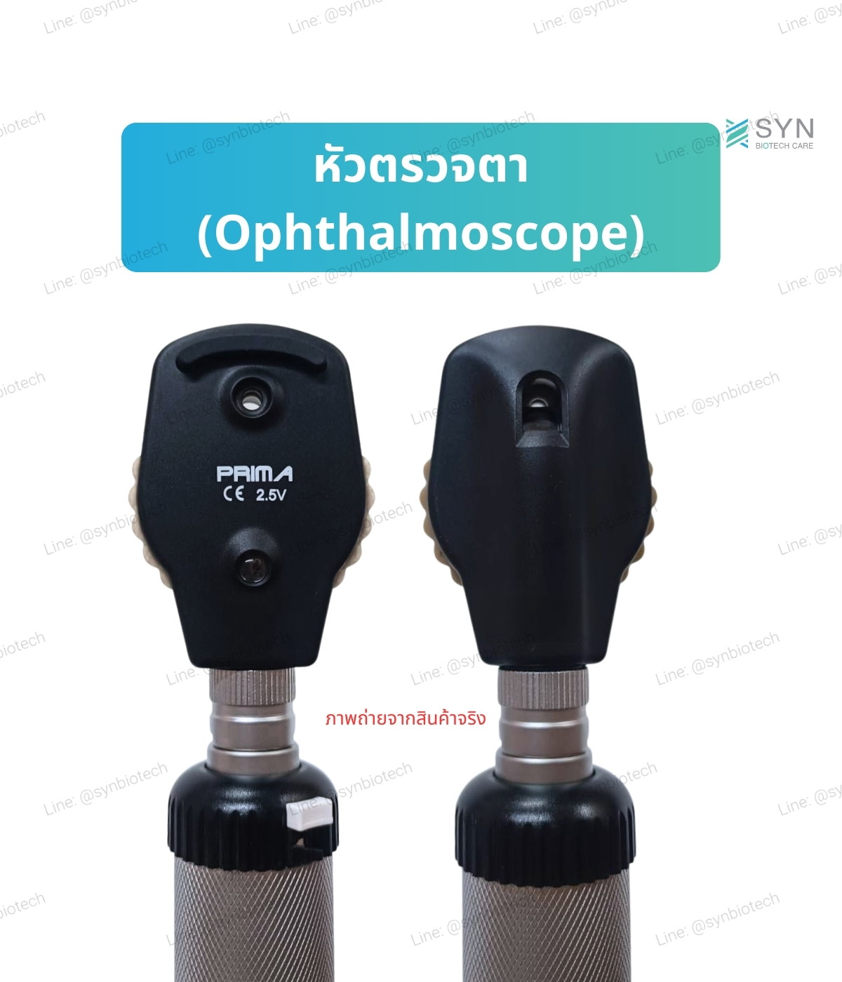 หัวตรวจตา (Ophthalmoscope) ใช้หลอดไฟสุญญากาศ (Vacuum) 2.5V มีเลนส์ให้เลือก ตั้งแต่ 20 ถึง +40 diopter จำนวน 24 เลนส์ แสดงตัวเลขเป็นสีแดง(-) และสีเขียว (+) เห็นได้ชัดเจน
