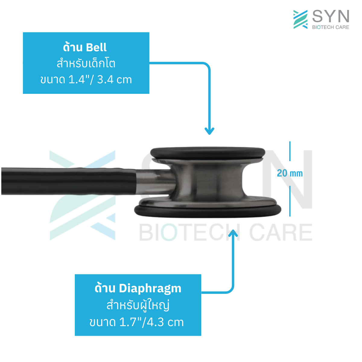 - ด้าน Bell (Pediatric) เส้นผ่านศูนย์กลาง 1.3 นิ้ว (3.3cm) สามารถปิด เปิด ด้วย Diaphragm เมื่อต้องการใช้งาน