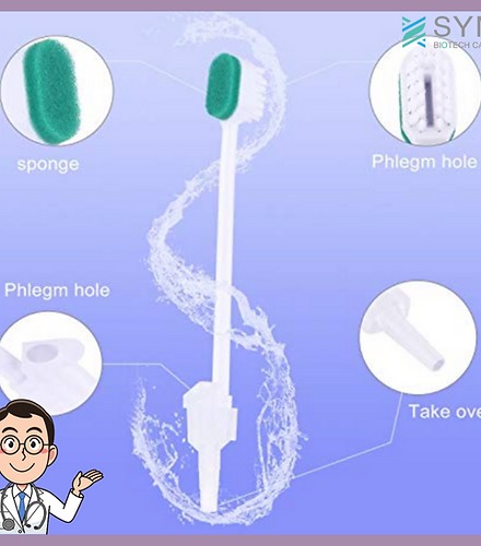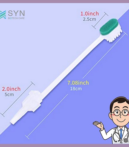 - ส่วนอีกด้านหนึ่งเป็นฟองน้ำนุ่มสีเขียวใช้ทำความสะอาดช่องปาก ซึ่งฟองน้ำชนิดนี้ปราศจากยาง(Latex) ทำให้ปลอดภัยต่อผู้ใช้งาน
